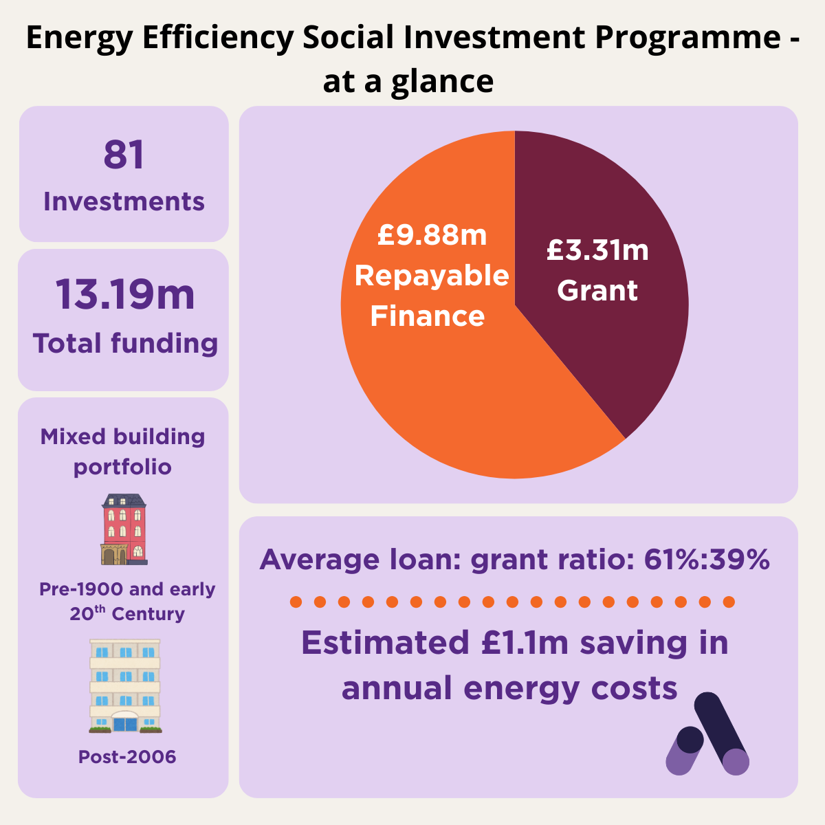 The programme portfolio offers an early picture of how retrofit demand is translating into real projects. The scale of activity and the balance between repayable finance and grant support highlight both appetite and constraint: organisations are keen to invest in their buildings, but viability remains closely tied to blended funding.